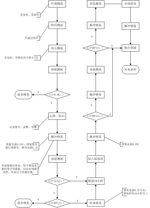 修——就是選擇合適的修復方法和修復流程,對有修復價值的電池進行修復。